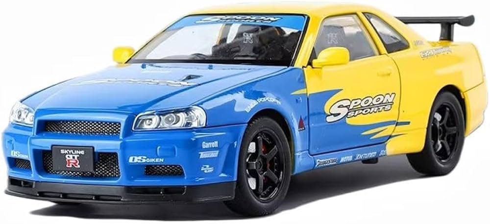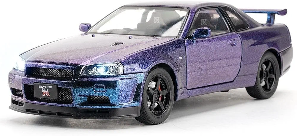 1:24 Scale Nissan Skyline GTR-R34 Diecast Models Alloy Diecast Toy Car Alloy Sports Car Model Vehicle Sound Light & Pull Back