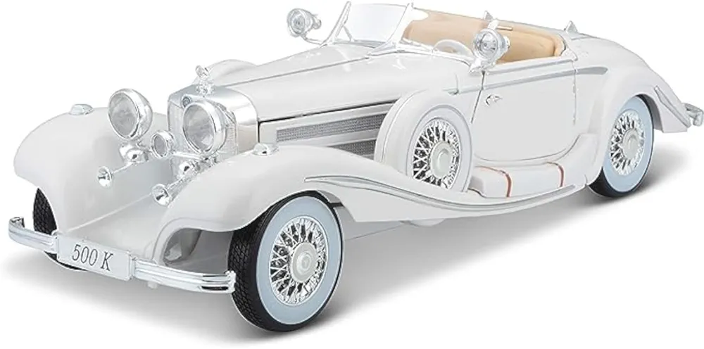 1/18 Scale Mercedees Benz 500K Classic Vintage Alloy Car Diecast Toy Vehicles Car Model with Openable Doors & Sound, Light Pull Back car