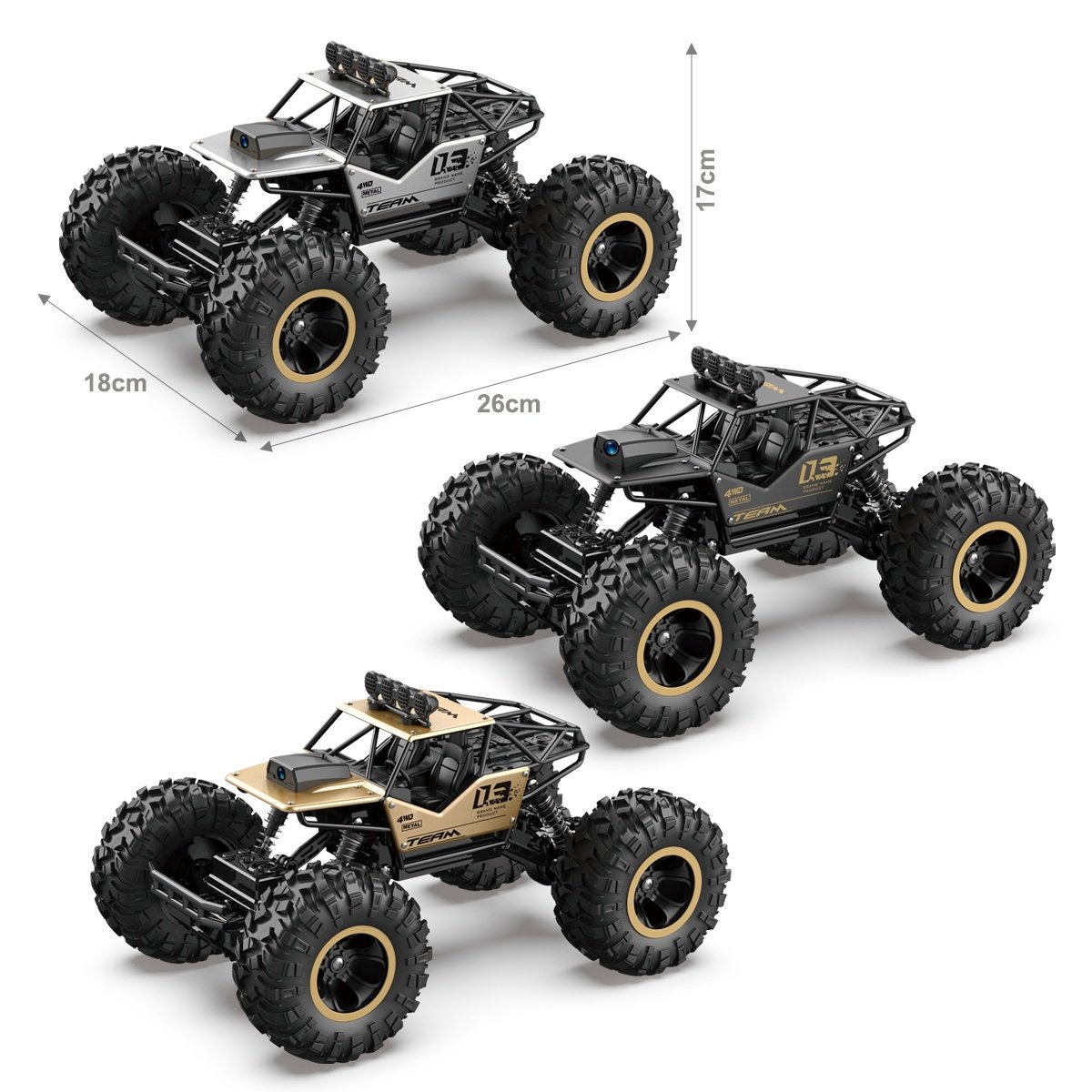 এই গাড়িটি শক্তিশালী alloy body এবং বড় off-road tyres দিয়ে তৈরি, তাই বালু, ঘাস, পাথুরে রাস্তা বা অসমান জায়গায়ও সহজে চলতে পারে। Remote control দিয়ে সহজেই গাড়িটি সামনে-পেছনে, ডানে-বামে ঘোরানো যায়।